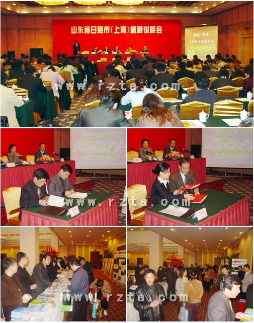在这次说明会上,日照国际旅行社与上海航空国际旅行社、日照春秋旅行社与上海春秋旅行社分别签订了上海万人游日照协议。