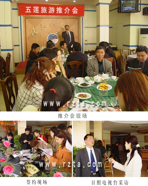 4月5日,由五莲山旅游风景区管理委员会旅游开发局局长郑德武、市场开发科科长陈东刚率五莲山、九仙山促销团一行在我市海天大酒店召开了旅游推介会。市旅行社协会会长李远胜带领市内八十余家旅行社参加了推介会,当场签订合作协议八十多份。市旅游局规划发展科科长孙开宏等领导也参加了会议。