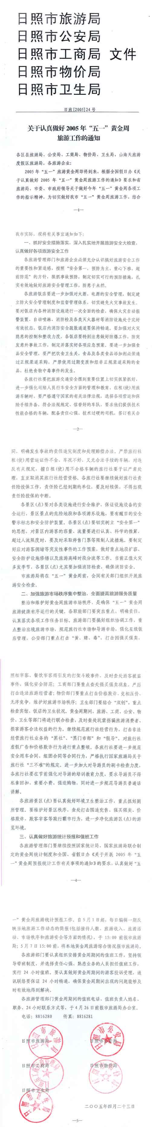 关于认真做好2005年“五一”黄金周旅游工作的通知(2005年04月28日)
