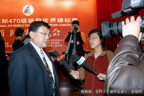 世帆赛组委会主任、中共日照市委副书记、日照市代市长杨军在新闻发布会上接受记者采访