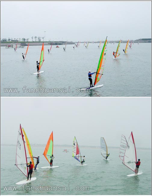 由国家体育总局水上运动管理中心主办的2006年全国青少年帆板锦标赛于6月16日 ——26日在日照水上运动基地举行,来自山东、浙江、福建、广东、广西、四川、陕西、辽宁、海南等各省12支代表队参加了本次比赛。山东省帆板队派出了14名选手参加角逐,今天上午进行了最后比赛,虽然天公不作美,一早就下起了雾蒙蒙的小雨,但这丝毫没有阻挡运动员们的热情,在最后的比赛中奋力拼搏。