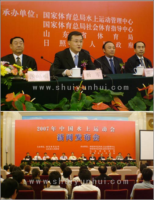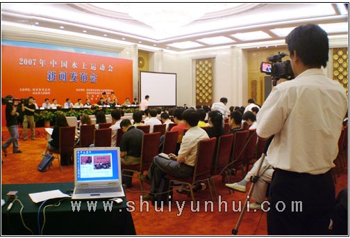 新华社、人民日报、中央电视台等70余家新闻单位参加了新闻发布会。2007年中国水上运动会在我国是首次举办,在世界上也是独创。这一赛事制度的确立,是对我国乃至世界水上运动事业发展做出的历史性贡献。此次新闻发布会由中国水上运动官方网站、日照信息网、日照旅游网、日照房产网全程网上直播。