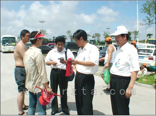 由日照市旅游局纪检组长时坤吉带领质检所工作人员在灯塔风景区对导游违规现象进行了突查暗访。检察中发现导游人员多存在不正确佩带导游证,不打导游旗等不规范行为,针对此现象进行了警告,检查组还查看了导游人员是否已取得上岗资格证,严厉查处了无证黑导并进行了批评教育。