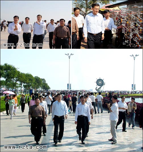 10月1日上午,风和日丽,日照市长杨军在市长助理、建委主任董淑波,市政府副秘书长、办公室主任陈常顺,安监局局长陈修全,市旅游局副局长孙元庆等领导及相关部门负责人陪同下到日照港视察港口经济、看望节假日坚持生产的职工。随后到了万平口检查“十一”黄金周旅游工作。