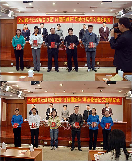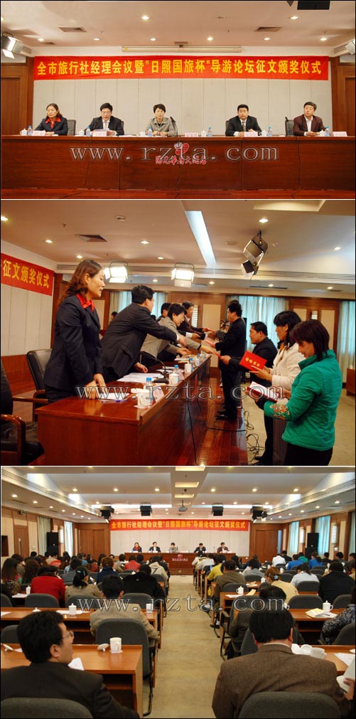 3月29日上午,全市旅行社经理会议暨“日照国旅杯”导游论坛征文颁奖仪式举行。日照市一百多家旅行社经理及获奖人员参加了会议。