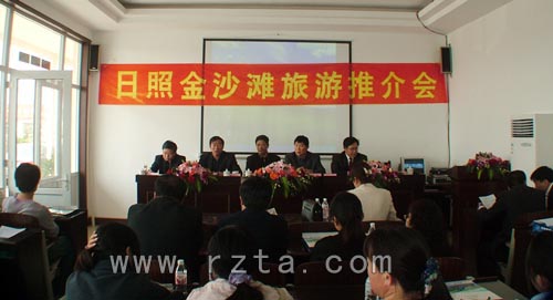 4月26日上午, 董家滩民俗旅游度假村举行“日照金沙滩旅游推介会”。推介会利用视频和解说让更多人了解董家滩民俗旅游度假村、走进董家滩民俗旅游度假村,进一步推介董家滩民俗旅游度假村——日照沿海景观又一颗璀璨的明珠。
