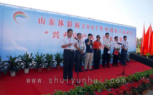 8月29日,“兴业房产杯”滑水比赛在美丽的日照奥林匹克水上公园开幕。国家体育总局水上运动管理中心奥运办主任刘建勇,国家体育总局水上运动管理中心五部副部长张旦,山东省体育局综合业务处副处长谈文新,日照市体育总会副主席申家新,水运会滑水比赛总裁判长周一峰,出席开幕式。市体育副局长王子亮主持开幕式。刘建勇宣布比赛开幕。