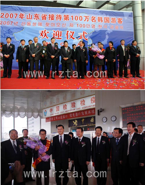 据了解,2005年年接待韩国游客50万人到2007年的100万人,仅用2年的时间,韩国年来鲁游客翻了一番,山东业已成为众多韩国客人出境旅游的首选目的地。山东省第100万名韩国游客林庆镐是由日照碧波国际旅行社接待,林庆镐旅游团一行50多人。