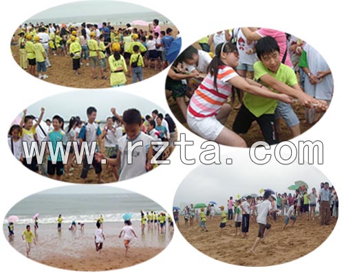 欢迎仪式后,夏令营营员们用奥运小火炬传递、沙滩足球、沙滩拔河等生动活泼的体育竞赛活动拉开了本次日照营地欢乐行活动的序幕。障碍赛跑、奥运小火炬传递、沙滩足球赛,爆发、坚持、互助、笑容、汗水……紧张热烈,精彩难忘。