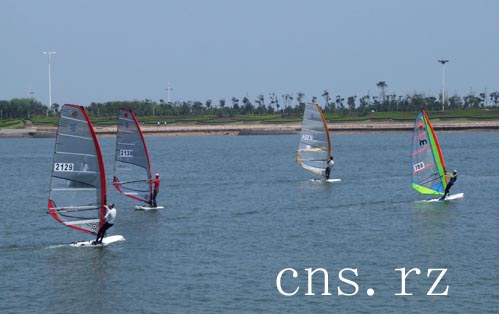 帆板与岸上的建筑相映成辉 帆板乘风破浪 经过5天的激烈角逐,2008年全国帆船帆板锦标赛中的帆板比赛项目于9日下午全部完成。广东队表现不俗,获得男子米氏、女子NP板两项冠军,山东队也取得了不错的战绩,获得女子米氏亚军、女子NP板季军。 记者从现场的计分处了解到,广东队的羊杰实力突出,获得男子米氏的冠军,江苏队的陶猛和浙江队的张徐峰分别获得二、三名。在女子米氏的比赛中,浙江队的王水佳夺魁,山东队的朱华丽、福建队的胡雅林紧随其后。辽宁队的王爱忱在男子NP板比赛中折桂,上海队的周元国和辽宁队的石传坤分获二、三名。女子NP板中,广东队的陈佩娜获得第一名,福建队的陈秋斌、山东队的李玲列居其后。 2008年全国帆船帆板锦标赛帆船比赛将于11日结束。
