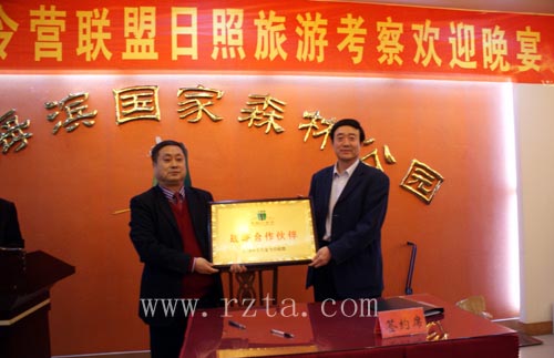 3月1日晚上,中国小士兵夏令营联盟与日照市旅游局在林海宾馆举行了战略合作伙伴签字仪式及欢迎晚宴。市旅游局局长王立新在欢迎晚宴上发表讲话,王局长指出了日照旅游的几点突出特色生态旅游和民俗旅游,并对考察团的到来表示欢迎,希望能够和小士兵夏令营合作愉快。中国小士兵夏令营联盟会长尹若庆代表小士兵夏令营联盟讲话,他说,非常感谢日照市旅游局的盛情接待和对他们工作的支持,他们回去要好好的和小士兵夏令营的孩子们宣传日照美丽的大海,热情的民俗和丰富的文化。随后,中国小士兵夏令营联盟会和我市旅游局签署了战略合作协议,日照市旅游局局长王立新被聘为中国小士兵夏令营联盟名誉会长。日照市旅游局副局长张荣英出席并主持了会议晚宴。