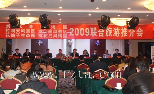 3月3日上午,由东港区旅游局组织召开的刘家湾赶海园、竹洞天风景区、龙门崮风景区、花仙子生态园、桃花岛风情园2009年联合推介会在君临天下大酒店召开。东港区旅游局局长肖建华出席并主持了会议,东港区旅游局副局长石强、市旅游局市场开发科科长张锡华、五家风景区的代表和市内各大旅行社总经理出席了推介会。