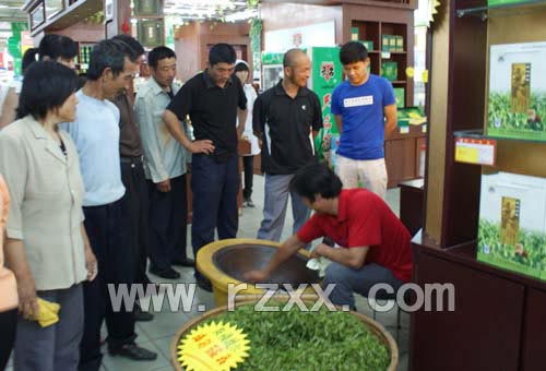 6月20日,在日照百货大楼银海绿茶销售专柜,清新扑鼻的茶香吸引了不少驻足观看的市民。