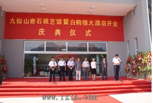 9月30日上午,日照市九仙山奇石根艺馆暨白鹤楼大酒店开业仪式在九仙山隆重举行。五莲县委、县人大、县政府、县政协领导,山东省美术家协会,日照市旅游局领导,日照市、青岛市旅行社协会领导,市、县友好台商企业代表及五莲工业园区管委、五莲县各乡镇、有关县直部门、县直企业主要负责人参加了开业仪式。