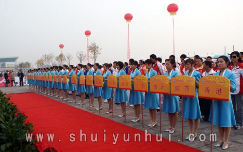 国家体育总局水上运动管理中心主任韦迪、水上运动管理中心副主任辛群英、水上运动管理中心办公室主任王茹、水上运动管理中心三部部长宋广礼、副部长罗冰,山东省体育局副局长李政、十一运会组委会竞赛部竞赛处副处长谈文新,日照市副市长、皮划艇竞委会主任解世增,赛区组委会副秘书长、皮划艇竞委会副主任、市政府副秘书长黄秀芹出席仪式。