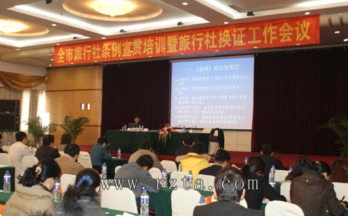 为贯彻和切实做好《旅行社条例》的实施,2009年11月4日,日照市旅行社条例宣贯培训暨旅行社换证工作会议在日照凌海大酒店举行。日照市旅游局副局长张荣英出席会议, 日照市旅游局行业管理科科长唐琴主持会议。