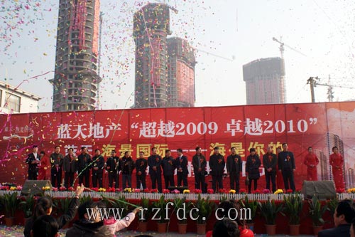 2010年1月1日上午9:58, “蓝天·海景国际”项目3#、4#、5#、6#楼封顶仪式在欢乐的锣鼓声中拉开帷幕。