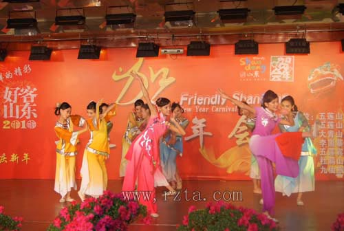 欢歌寄豪情,劲舞迎新春。2月1日晚,五莲宾馆会议室内春潮澎湃、歌舞飞扬。以“好客山东贺年会”为主题的2010年五莲贺年会新春文艺晚会浓情上演。省旅游局国内市场处王春生处长、好客山东贺年会工作检查组、市旅游局领导班子成员及各科室负责人、各区县旅游局局长及部分涉旅企业相责人与近千名观众共同观看了晚会。