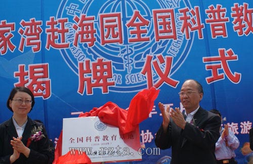 仪式上,副区长安丰华在讲话中说,近年来,刘家湾赶海园在大力发展滨海旅游的同时,紧紧围绕“节约能源资源、保护生态环境、保障安全健康”这一主题,投资建设了海洋生物馆,采取图文、视频等多种直观、生动的形式展示海洋科普知识,探索出一条科普与旅游相结合的新路子,成为日照市首家“全国科普教育基地”。