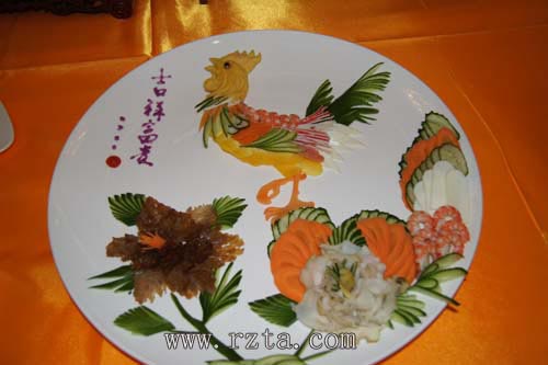 比赛过程中,各参赛选手拿出看家本领,展示自己别具匠心的创意作品。现场有用南瓜雕刻的太公垂钓,有用萝卜雕刻的海底戏浪,也有用两个西瓜镂空雕刻的水上宫灯……原本其貌不扬的瓜果、萝卜、香芋等食品,在参赛选手的巧手下,竟变成了形态各异的具有美学价值的艺术品。肥硕的海参,碧绿的青葱,再配上乳白色的象拔蚌,让人垂涎欲滴。冷菜拼盘里,大师杂技般的手法和鬼斧神工般的刀法将让大家体验到中国烹饪的神奇艺术效果。一道道色、香、味、型俱佳的美味菜品,在灯光下泛出诱人的光泽,赢得了在场观众的一阵阵喝彩。