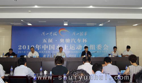 8月3日,“五征•奥驰汽车杯”2010年中国水运会游泳测试赛总结会在水运会组委会办公楼举行。中国游泳裁委会常委、2010年中国水上运动会游泳测试赛技术代表张佩纶,国家体育总局、游泳运动管理中心跳水项目主管梁勇,水运会跳水测试赛总裁判长耿涛,副市长、组委会副主任解世增,组委会竞赛部执行部长刘家坤出席此次会议并讲话。日照市组委会执行秘书长、市政府应急办副主任王磊主持会议。