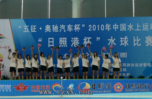 8月21日,2010年中国水上运动会水球女子比赛在日照游泳馆结束了最后一天的角逐,广西代表队摘得此项目的金牌,这也是本届运动会的首枚金牌。四川队和天津队分别摘得银牌和铜牌。同时,天津代表队获得 “体育道德风尚奖”。