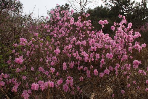 据了解,野生杜鹃俗称映山红,在五莲山生长区域非常广泛,总面积约有一万多亩,其品种之多,面积之广,花色之丽,誉冠华北,素有“江北第一”杜鹃园之称。五莲山杜鹃花色各异,因品系不同,开花的时间也各不相同,自阴历三月份,粉紫色的"蓝锦"品系,就争相开放。“五一”时节,可见漫山遍野簇簇鲜花,流光溢彩,磬香袭人,与山光石景相映衬,宛如天然画卷。此时,赴山赏花的游人如织,但见花海人潮,游人似梦如醉,如入仙境。