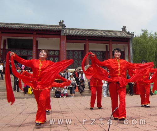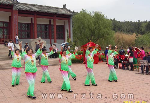4月30日,浮来山福寿广场上彩旗招展,锣鼓喧天,逾千名游客齐聚一堂,现场歌舞不断、笑声不停、热闹非凡。据悉,今天虽然是“五一”旅游假期的第一天,景区内已是游人如织,车水马龙,游客数量和旅游收入与去年同期相比,均有大幅度的攀升,迎来了旅游的小高潮。