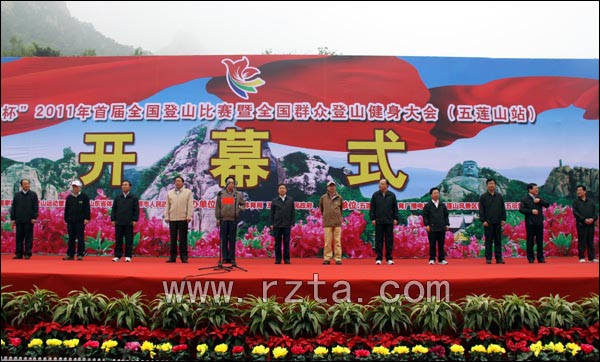 全国人大科教文卫委员会副主任、中华全国体育总会名誉主席、国家体育总局原党组书记李志坚,国家体育总局登山运动管理中心主任、中国登山协会副主席李致新,国家体育总局登山运动管理中心副主任、中国登山协会副主席颜金安,国家体育总局原办公厅主任刘元福,山东省体育局党组成员、省体育中心主任鲍新广,中共日照市委副书记、代市长李同道,日照市政协主席李守民,日照市人大常委会副主任梁云爱,日照市人民政府副市长孙雨等领导出席了开幕式。五莲县委副书记、县长杜江涛主持开幕式。