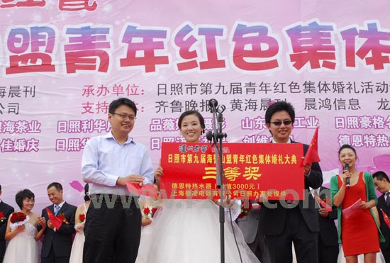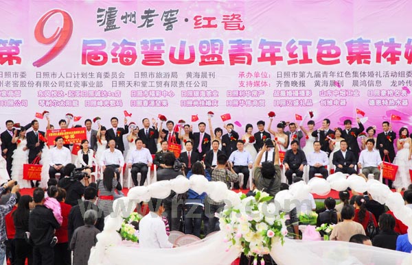 日照市人大常委副主席梁云爱出席婚礼庆典仪式活动并为新人证婚。市纪委党务副书记、监察局局长高月康,日照军分区参谋长郇敏、团市委书记袁利强市旅游局副局长禚磊和市文明办、市直机关工委等部门单位的分管领导参加了此次活动。苏浙皖豫的游客和日照市民等2万余人共同见证了隆重热烈的西式婚典。本次别开生面、时尚浪漫的集体婚礼,为假日的港城增添了一道喜庆的风景线。