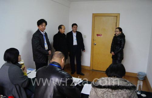 2011年全国导游人员资格考试面试环节(日照考区)今日在海天大酒店启动。日照市纪委监察局派驻第三纪检组时坤吉、日照市旅游局副调研员杨家坤、日照市旅游局副调研员张锡华等领导对面试的四个考场进行巡查。