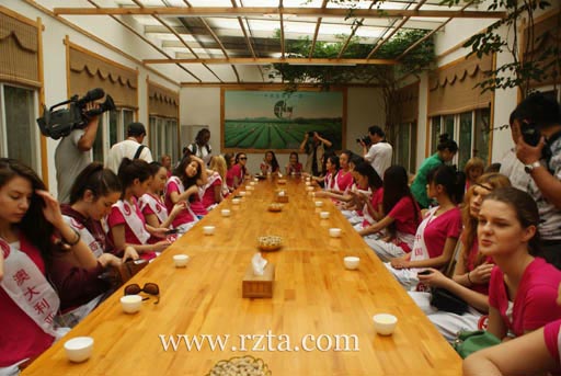 6月25日第五届世界旅游大使的佳丽们来到御海湾观光茶园,体验日照近海茶园艺术及茶文化。