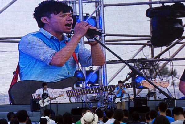 日照海洋国际音乐节的首支表演乐队麦莎乐队在观众的呼唤中登台表演。这支曾为多部影视作品创作过脍炙人口歌曲的乐队拉开了今夏音乐节的大幕。