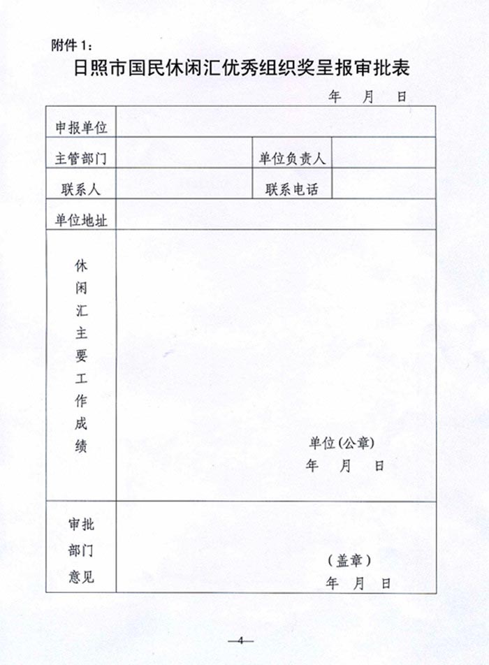 点击下载:日照市国民休闲汇优秀组织奖呈报审批表 日照市国民休闲汇十佳休闲活动呈报审批表
