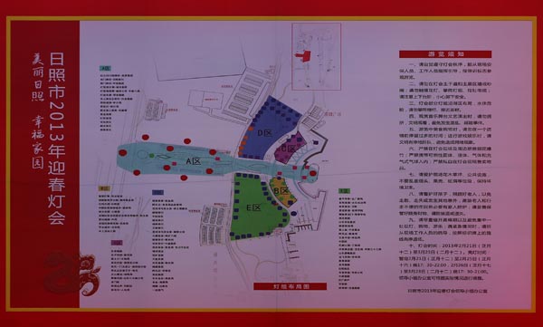 日照迎春灯会亮灯时间为2013年2月21日(农历正月十二)至3月23日(农历二月十二)。部分装饰灯可延期。