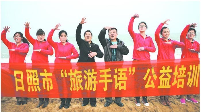 当日,日照市“旅游手语”公益培训开班暨“手语服务”志愿者签约仪式在万平口海滨风景区举行,首批来自日照市景区、旅行社、酒店、社区的40余名“手语服务”志愿者签约,并接受了培训。