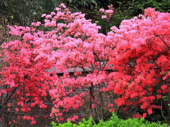 传统的五莲杜鹃花主要有映山红、迎红杜鹃、照山白等三大品系,有映山红、满山红、云锦杜鹃、兰锦杜鹃等40多个品种。花色则因种类不同而不同,有鲜红色、粉红色、紫色、金黄色、淡黄色、雪白色、白色等。花期长,杜鹃花因品种不同,开花时间也各不相同,从3月份开始,粉紫色的“兰锦”就开放了,紧接着4月下旬到5月上中旬开放的是映山红、满山红等。