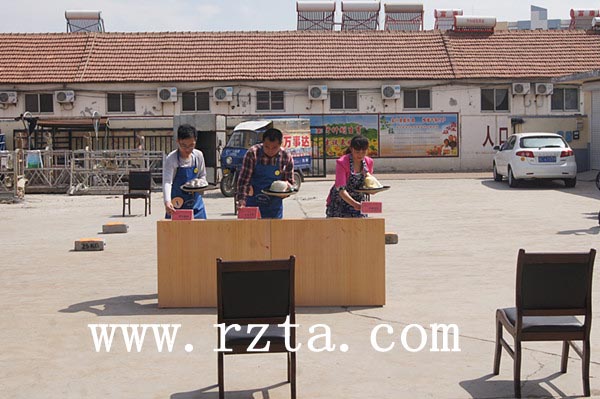 据拓普联合学校秦校长介绍,参加本次考试人员所穿的服饰、考试物料都是由学校提供,在面料花色的选择上,充分考虑民俗旅游村所接待的客户群体的特点,最大限度的让旅客能够有耳目一新的感觉。客服服务技能的考核,每四人一组,从甩单、被套、枕头、渔家饰品的摆放,最后的茶水服务,一切明确分工,有条不紊。考场如火如荼。