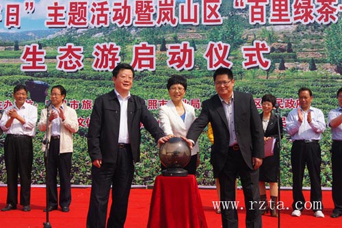 日照市中国旅游日主题活动暨岚山区百里绿茶长廊生态游启动仪式今天在巨峰镇盛大开幕。市旅游局局长王立新,副局长张荣英,岚山区委、区政府,市直相关部门领导及茶叶企业代表参加了活动并讲话。