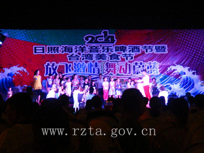 紧邻万平口泄湖的舞台上,主持人热情洋溢的开场白将现场气氛推向了第一个高潮,身材惹火的舞蹈演员献上了激情四射的热舞表演,主持人还与现场的孩子们进行了别开生面的互动游戏,让不同年龄段的人都参与到这场盛夏的狂欢中来。现场举办了喝啤酒竞速赛,六位好汉登台用吸管喝下了一大瓶啤酒,用时最短者获胜,并得到了一份奖品。(小编提示:每晚都会有喝啤酒竞速赛,每晚前三名将进入最后的决赛,决赛奖品将更加丰厚!)