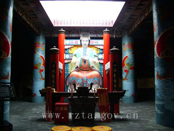 海神庙,利用五座太阳塔中的第四座设计,以日照当地一个真实的民间故事——“神龟救难”的传说为蓝本策划,在鱼骨庙遗址上修建的一处景点。庙内供奉着妈祖、东海龙王、东海神龟等,更为海洋文化增添了神秘色彩。
