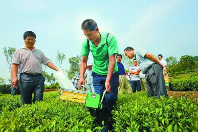 8月26日,技术人员在演示茶叶采摘机。当日,市农机部门组织召开了2014全市茶叶机械化采摘现场会。旨在进一步加快茶叶机械化采摘技术的推广应用步伐,促进茶叶生产全程机械化,推动我市茶叶产业又好又快发展