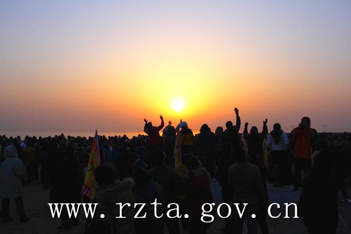 燔柴祀日,圣火舞,敲钟祈福,感恩太阳,祈福未来。自2010年起,日照每年1月1日在万平口演艺广场举办“迎日出祈福庆典”活动,目前已成功举办五届。 乙未羊年,元月1日,15年“好客山东·多彩日照”贺年会开场大戏—元旦迎日出祈福盛典也将如期举行。