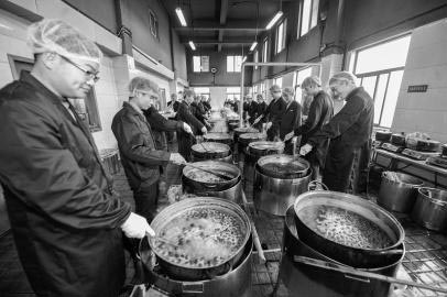 1月26日,近30名工作人员用传统的铜锅熬制腊八粥。 当日,杭州传统老字号中药房“方回春堂”的工作人员加紧熬制传统腊八粥,准备腊八节时将3万份腊八粥全部送给市民百姓们分享。 腊八粥有18种材料,主料为糯米、晚粳米和黑米,配料除赤豆、花生、米仁、红枣、莲子、桂圆老六样外,还有豇豆、葡萄干,为了能更好地起到健脾胃的作用,又加入了枸杞、山药、茯苓等中药材。 浓浓的腊八粥将不仅带给人们营养的美味,也把浓浓的传统年味传递开来。