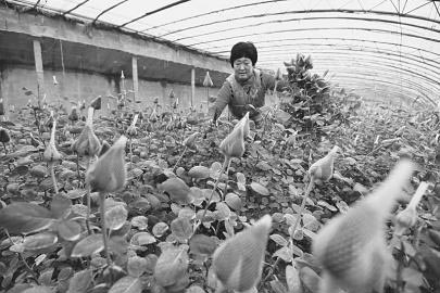 近日,东港区日照街道费家河村的张红秀正在采收玫瑰。54岁的张红秀和老伴种了1亩多地的玫瑰,年均收入在4万元左右。 近年来,利用我市自然条件和区位优势,林业部门大力发展以花卉种植为主导的“美丽产业”,采取政府引导、公司搭桥、农民种植模式,发展花卉种植近14000亩,其中设施栽培和露地栽培分别是3900余亩和10000余亩,仅2014年花卉产业年产值就达2.6亿元,有效带动了农民致富增收。