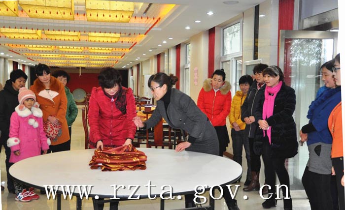 在餐饮、客房服务的实操课程中,培训人员手把手教授餐饮摆台、上菜技巧、服务程序,尤其是客房服务中的中式铺床技能,受到了学员们的青睐。培训期间,山海天旅游局还为各学员免费发放了山东省乡村旅游培训教材《图说山东乡村旅游》和《乡村旅游开发与管理指导读本》。
