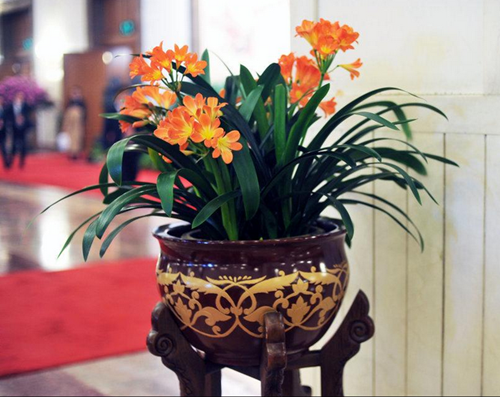 2015两会:大会堂里春花盛开美不胜收(2015年03月10日)