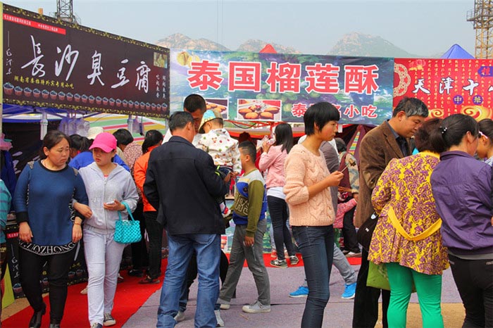 5月1日上午,在五莲山旅游度假区,小榆林村“莲山人家”首届中华美食节正式开幕。活动现场,各种美食齐参展,狗不理包子、蒙古烤肉、老北京糖葫芦、云南香草饭、章鱼小丸子、担担面、酸辣粉、油炸冰淇淋、羊肉泡馍、蚵仔煎、长沙臭豆腐、铁板鱿鱼等特色美食现做现卖,让游客们大饱口福!