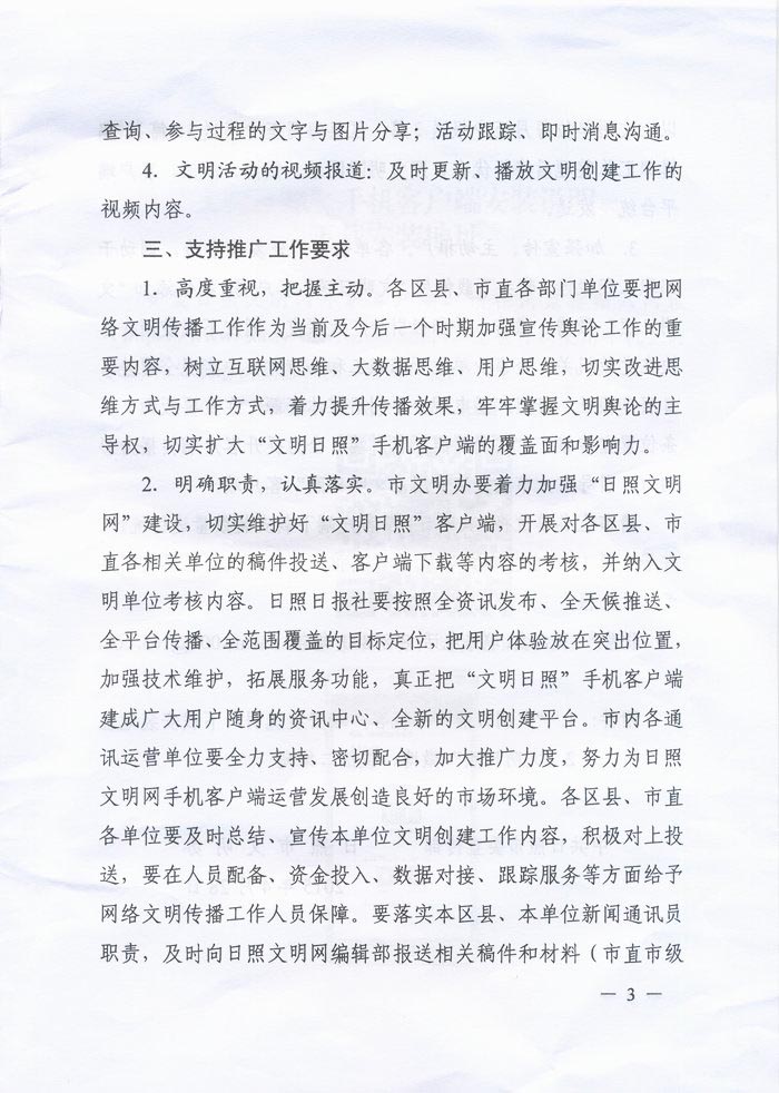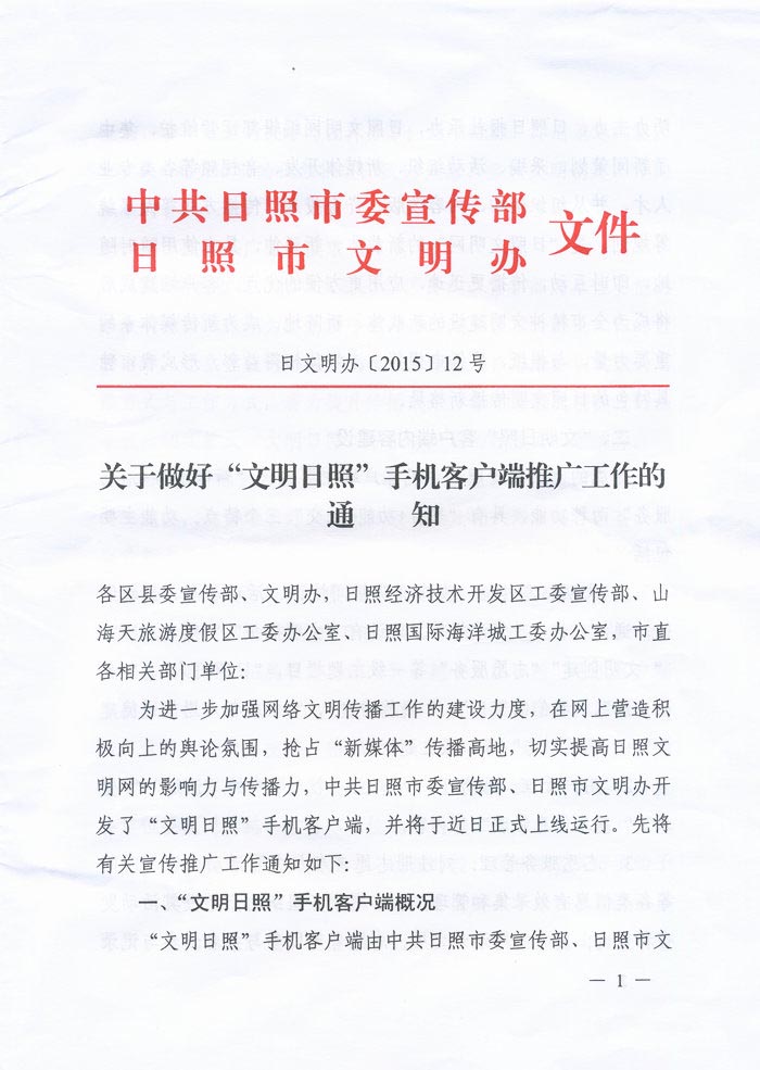 关于转发《关于做好“文明日照”手机客户端推广工作的通知》的通知(2015年05月06日)