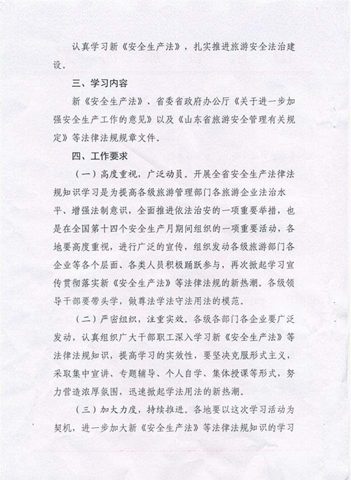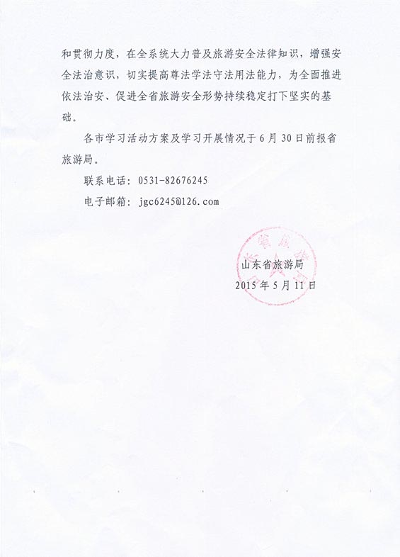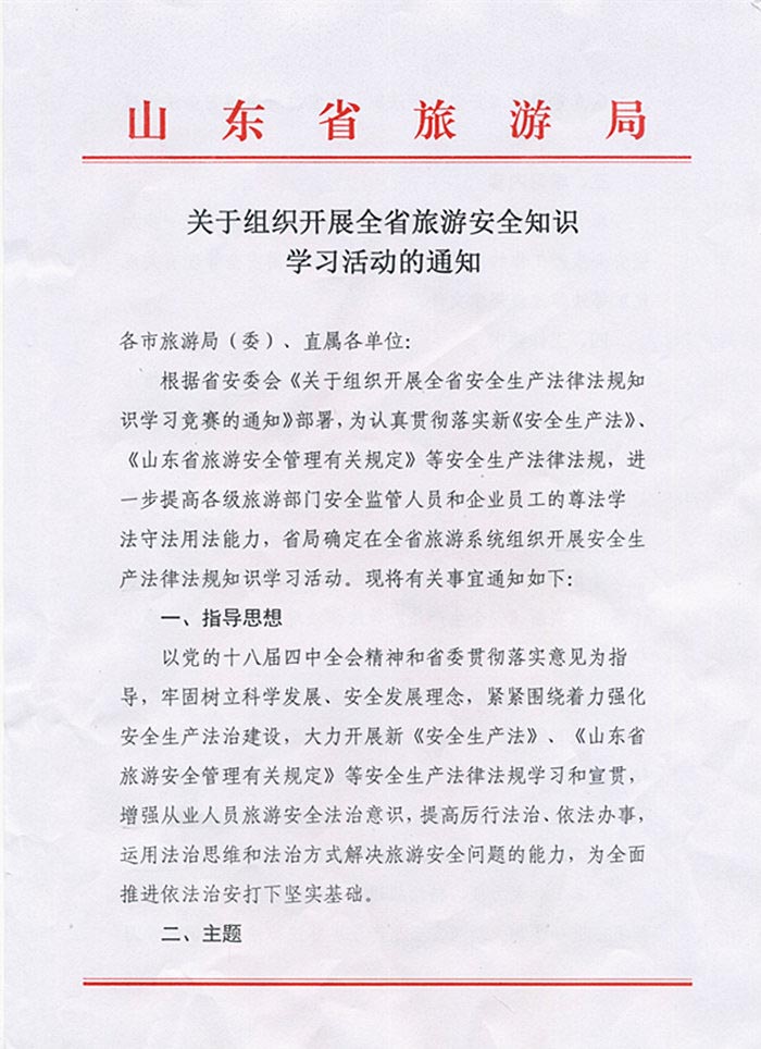 关于转发《山东省旅游局<关于组织开展全省旅游安全知识学习活动的通知>》的通知(2015年05月18日)